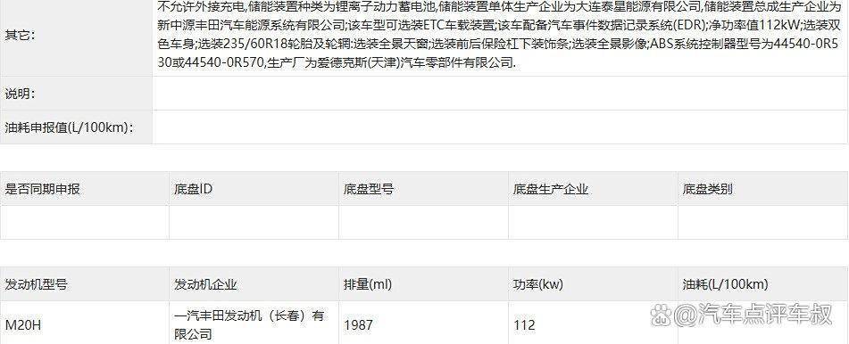 新车将继续提供燃油和智能电混双擎两种动力。燃油版换装2.0L自然吸气发动机,最大功率126kW。智能电混双擎版则配备1.8L自然吸气发动机和镍钴锰酸锂电池,百公里油耗可达4L级,能耗媲美主流插混车型。