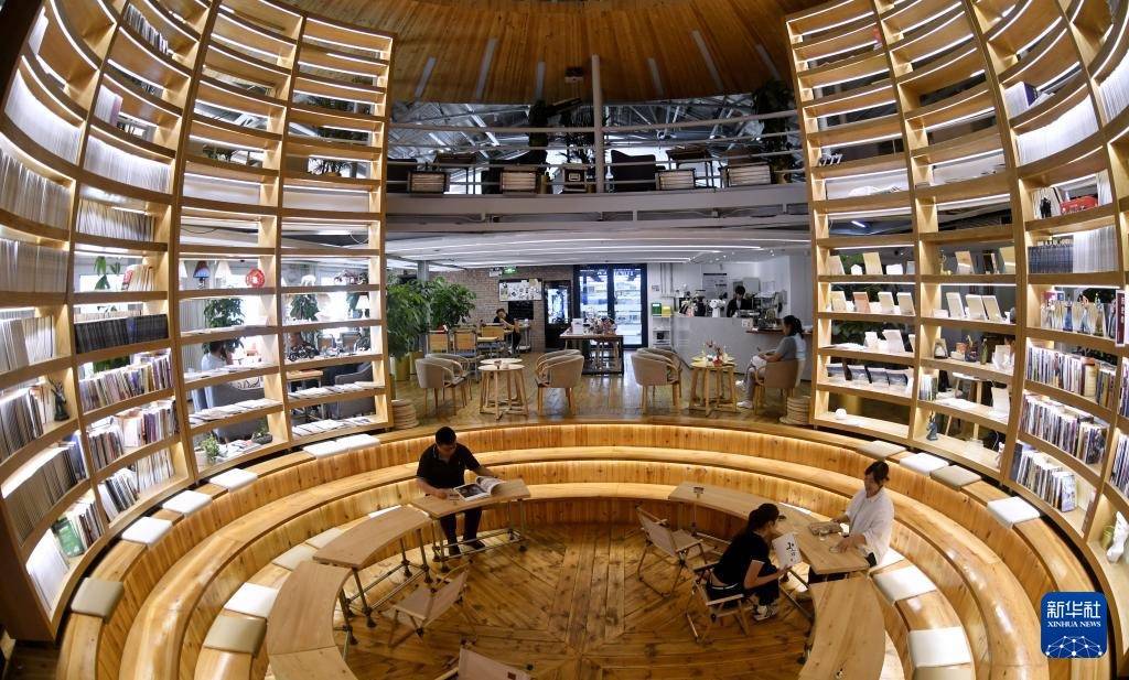 r纪家庙双创产业园内为青年人提供的集读书、简餐、会谈为一体的拓普原素咖啡馆(9月19日摄)。