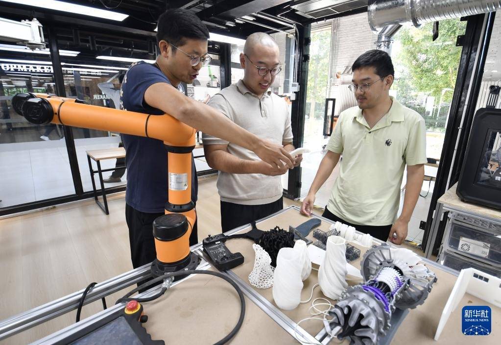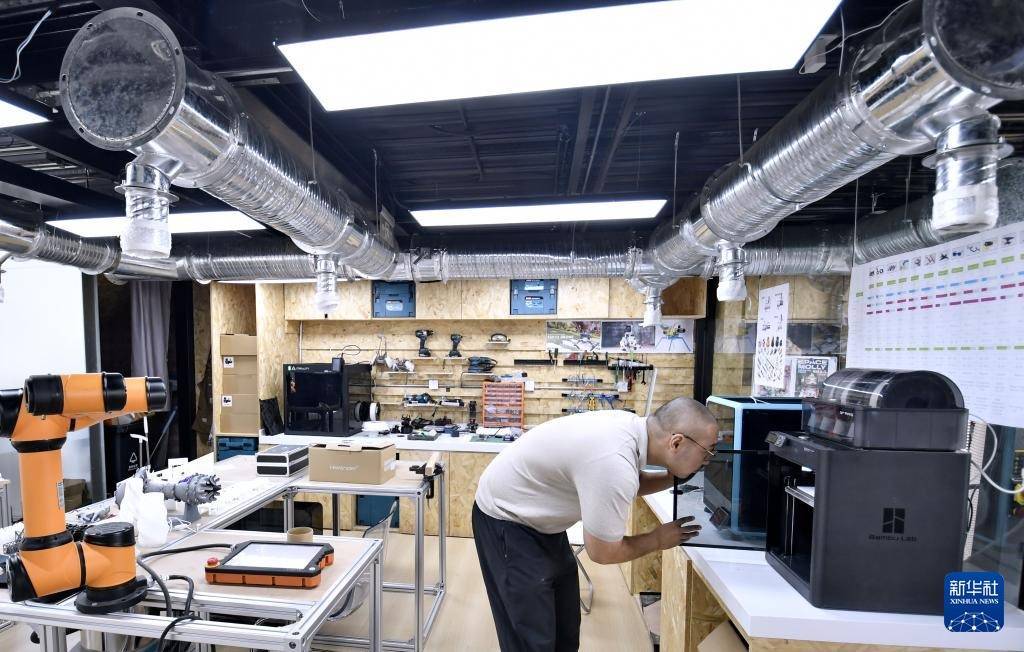 r青年创业者在纪家庙双创产业园内的创意实践“梦工场”使用3D打印机(9月19日摄)。