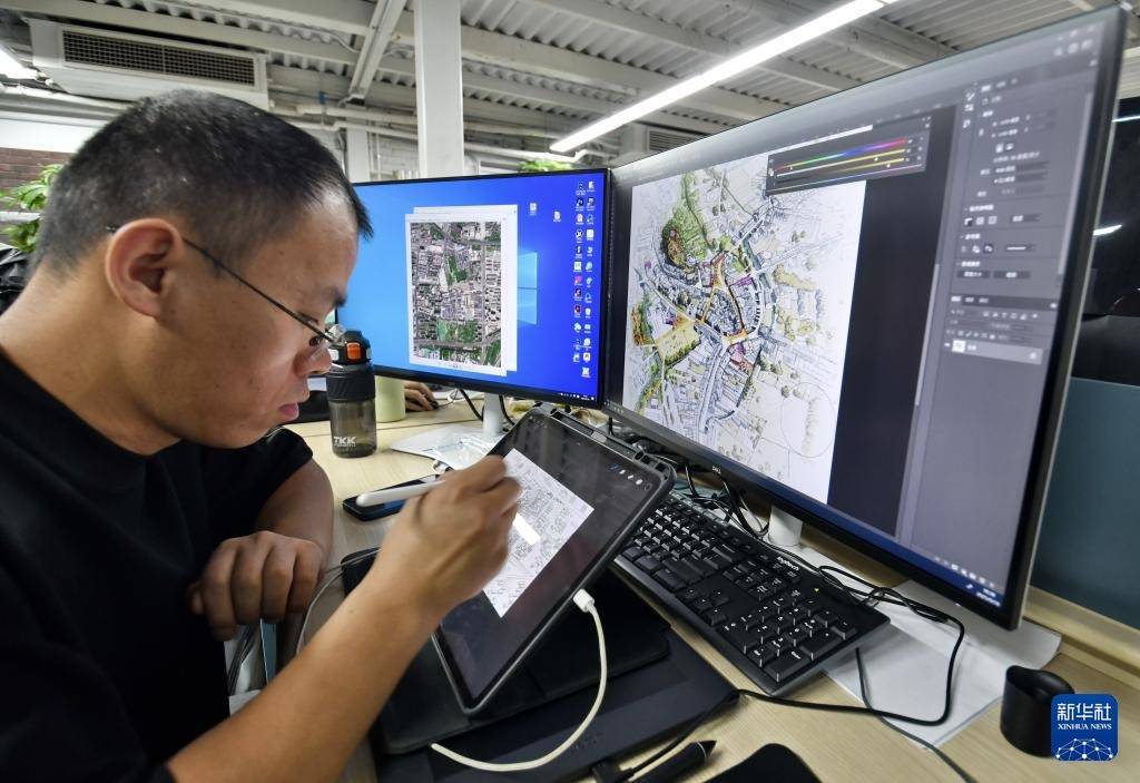r纪家庙双创产业园一家文创公司的青年技术人员在进行文创产品设计(9月19日摄)。