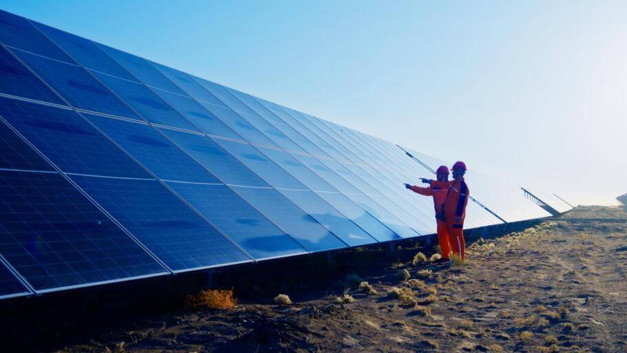 皖能新疆奇台80万千瓦光伏项目建设现场。